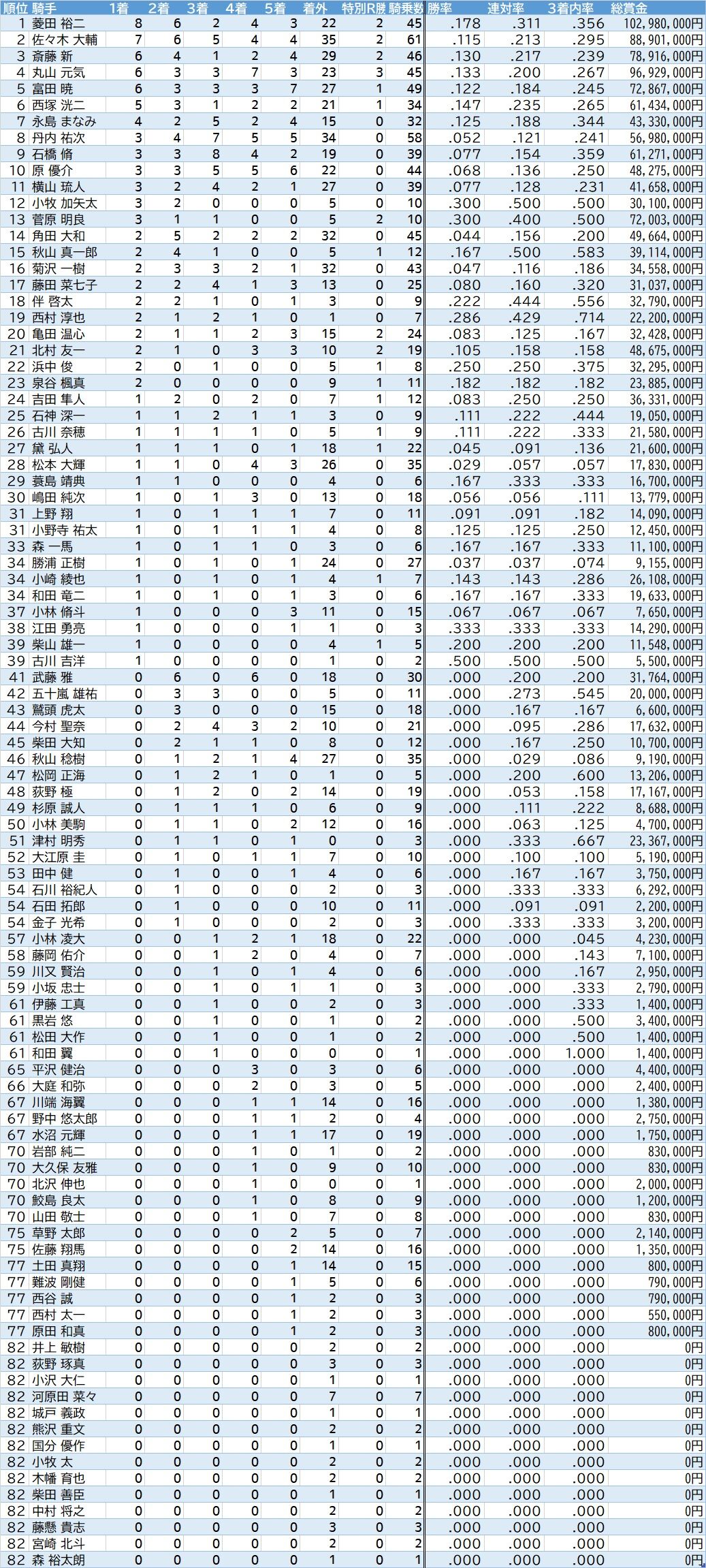 | 4 | ジェラルディーナ | 48,113 | 牝5 | 斉藤 崇史 |