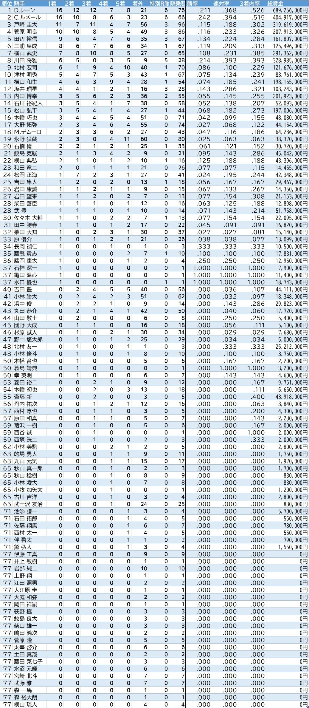 全騎手ランキングは下記画像をクリック